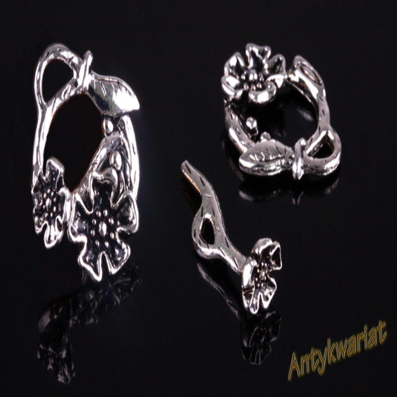 Zapięcie KARABIŃCZYK w kształcie KWIATU. PRODUKT ANTYALERGICZNY - NIE ZAWIERA NIKLU ANI OŁOWIU; do wyrobu biżuterii. KOLOR: CIEMNY SREBRNY