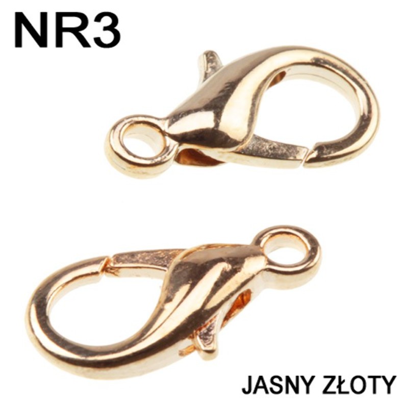 Solidne zapięcie metalowe - KARABIŃCZYK. Produkt nie zawiera niklu, ani ołowiu. Zapięcie przeznaczone do wyrobu biżuterii. Zapięcia starannie wykonane i wykończone na wysoki połysk.