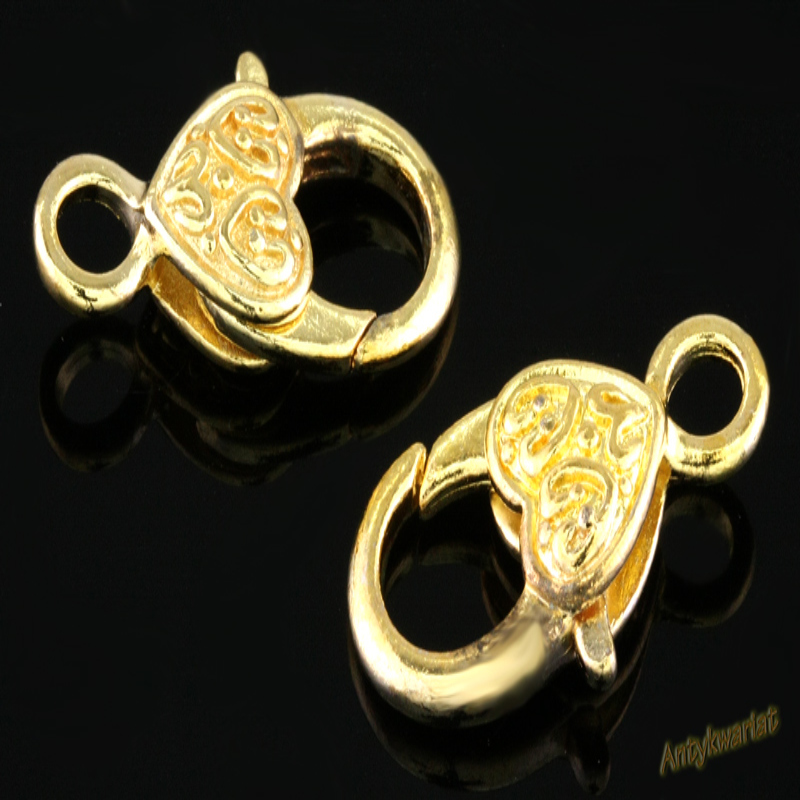 Opis:Zapięcie metalowe składające się z dwóch części w kolorze STAREGO ZŁOTA wykonane z MIEDZI. PRODUKT ANTYALERGICZNY - NIE ZAWIERA NIKLU ANI OŁOWIU; do wyrobu biżuterii.