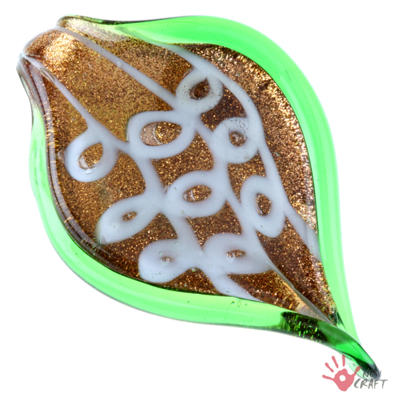 Bardzo ładna zawieszka ze szkła weneckiego w kształcie LIŚCIA, każda sztuka różni się od siebie odcieniem i wzorem; do wyrobu biżuterii. KOLOR: ZŁOTY / ZIELONY / BIAŁY